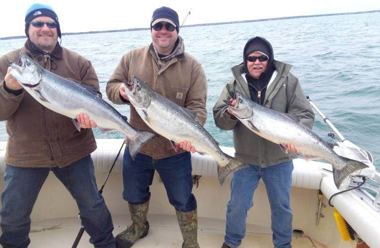 The KINGS have arrived!! Normally the salmon bite isn't this good in April but they are HERE and they are feeding! We had a limit of kings with a few trout the last two days. These kings are also way about average size for this time of year also. Our average size has been 14-18 lbs. These fish will put on 10-12 lbs by mid August. We are going to have some big kings this year and a lot of them. Believe me when I say "This will be a season to remember". Don't miss out on your chance at some drag screaming spring kings!