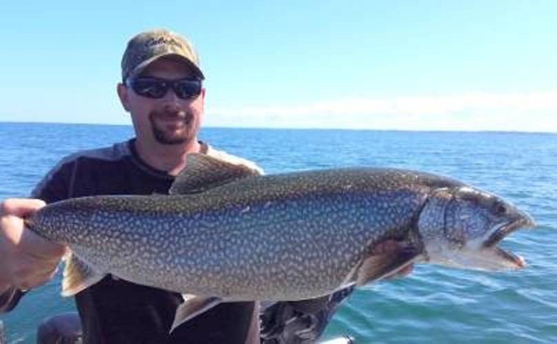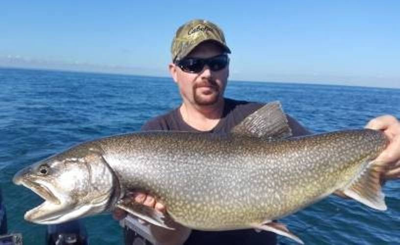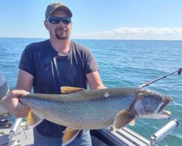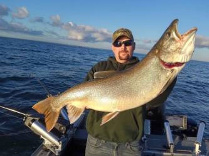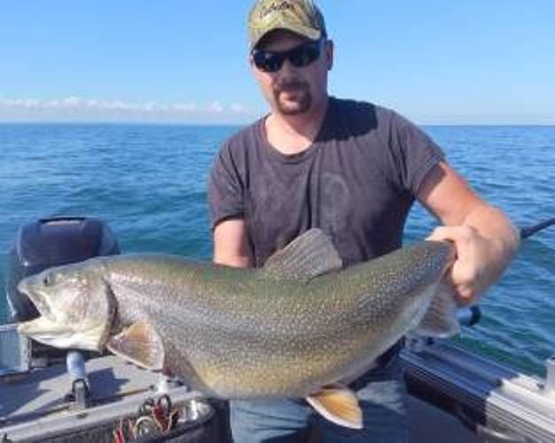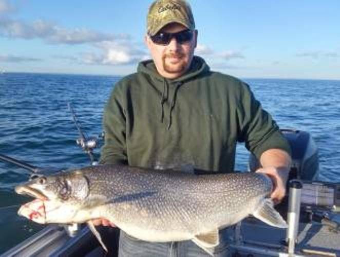 Switched gears today and went after green fish instead of silvers. I received a call from a guy who wanted to fish for lake trout with hopes of getting one over 20 lbs for the wall. It didn't take long for us to achieve our goal. Our first bite was about 5 minutes after we set lines and was the biggest fish of the day! It tipped the scale at a little over 21 lbs.