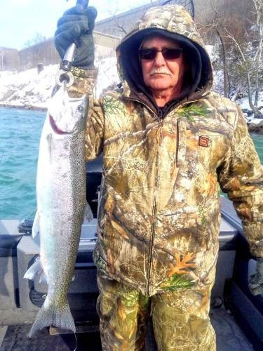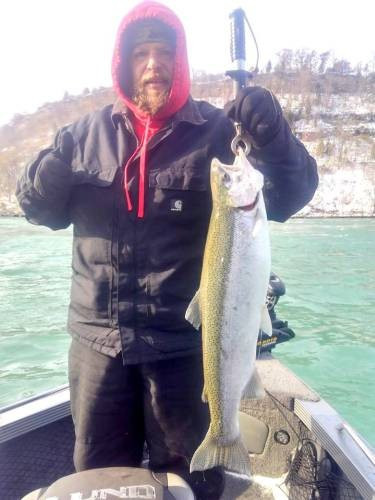 Had two good days of fishing with Mike and Rob. Here are some of the fish we caught. Today was a Yakima Bait Company mag lip day! Steelies and Lakers were chowing on them. Green machine and Grinch produced all the bites. Lots of immature smelt in the river right now. The bite is only going to get better.