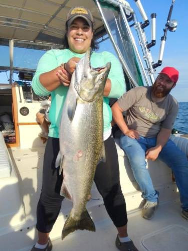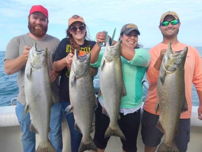 Soon the mature salmon will be making there way up the Niagara for there anual fall run but right now they are staging in front of the river. If you would like to catch some of these drag screaming tackle busters call or text me. 716-550-0413 Let's get the NET WET!